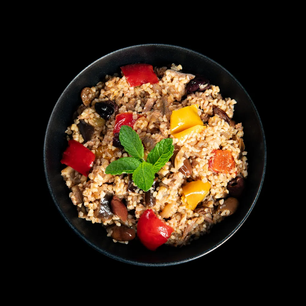 Un piatto bilanciato e ricco di nutrienti: il bulgur apporta carboidrati complessi e fibre per energia sostenuta e salute intestinale; la caponata fornisce vitamine, antiossidanti e fibre grazie a verdure come melanzane e peperoni; il tonno è una fonte eccellente di proteine magre e omega-3, utili per il cuore e il sistema nervoso. Un pasto completo e leggero, ideale per una dieta equilibrata e mediterranea.